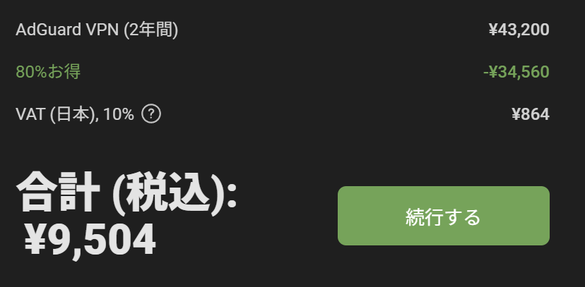 Adguard単体もあるんですけど、AdguardVPN(5年)のセットの方がコスパお化けなのでそれだけ張っておきます。AdguardVPN単体だけで元取れすぎて大黒字です。